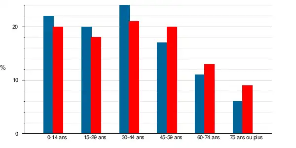 La population a vieilli entre 1999 et 2009, le taux des personnes de 60 ans et plus passant de 17 % à 22 %, à l'instar des populations du département et de la France qui sont aussi passées respectivement de 18 à 20 % pour le Département et de 20 à 23 % pour la France métropolitaine.