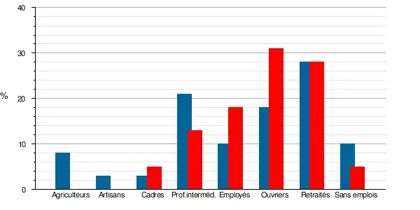 | Ouvriers | 49 | 30,8 | 28 | 17,9 | 15,7 | 17,3 | 13,5 | 14,9 |