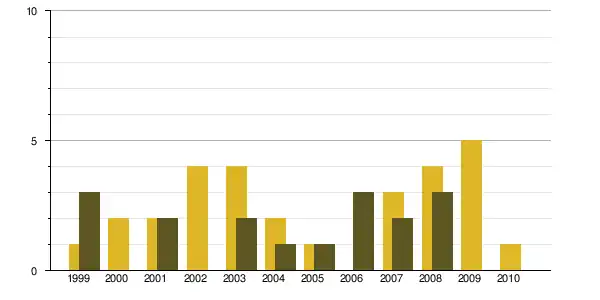 | 1968 à 1975 | 1975 à 1982 | 1982 à 1990 | 1990 à 1999 | 1999 à 2009 | ||