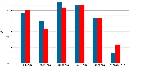 La population a vieilli entre 1999 et 2009, le taux des personnes de 60 ans et plus passant de 21 % à 24 %, à l'instar des populations du département et de la France qui sont aussi passées respectivement de 20 à 23 % pour le Département et de 20 à 23 % pour la France métropolitaine.