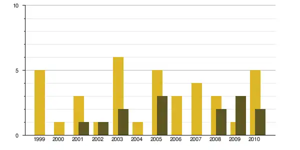 | 1968 à 1975 | 1975 à 1982 | 1982 à 1990 | 1990 à 1999 | 1999 à 2009 | ||