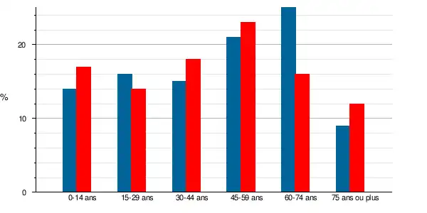 La population s'est rajeunie entre 1999 et 2009, le taux des personnes de 60 ans et plus passant de 34 % à 28 %, alors que parallèlement les populations du département et de la France ont quant à elles vieilli, passant respectivement de 20 à 23 % pour le Département et de 20 à 23 % pour la France métropolitaine.