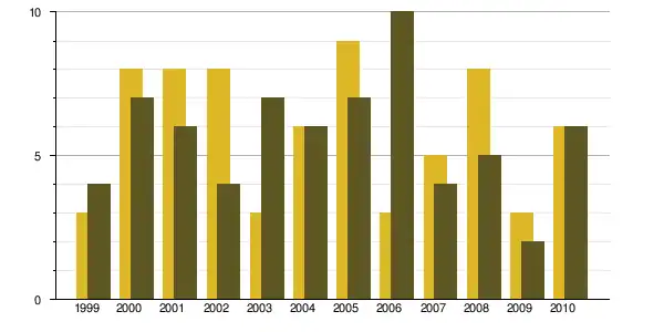 | 1968 à 1975 | 1975 à 1982 | 1982 à 1990 | 1990 à 1999 | 1999 à 2009 | ||