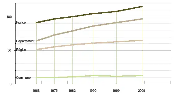 | 1968 | 1975 | 1982 | 1990 | 1999 | 2009 | Évolution annuelle moyenne sur la période 1968-2009 (%) | ||