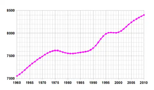 | 1980 | 7 545 539 | 90 872 | 12,0 | 92 442 | 12,2 | - 0,2 | 9 357 | 1,0 | |
