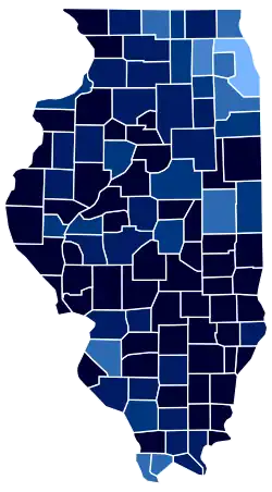 Sa population se concentre principalement dans la ville de Chicago et son agglomération, ainsi 43,3 % des habitants de l'Illinois réside dans le comté de Cook[4]. En effet, la ville de Chicago compte à elle seule 2 746 388 habitants en 2020, soit plus du cinquième de la population totale de l'État. Son aire urbaine, répartie sur trois États (dont l'Indiana et le Wisconsin) comprend 9,6 millions d'habitants.