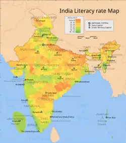 En 2021, le taux de fécondité en Inde s'élève à 2,0 enfants par femme et est passé pour la première fois en dessous du seuil de renouvellement de sa population[27]. Pour comparaison, l'indice est de 3,5 au Pakistan (en 2021) et de 2,0 au Bangladesh (en 2021). Le taux de fécondité en Inde est calculé par l'intermédiaire de sondages à grande échelle.