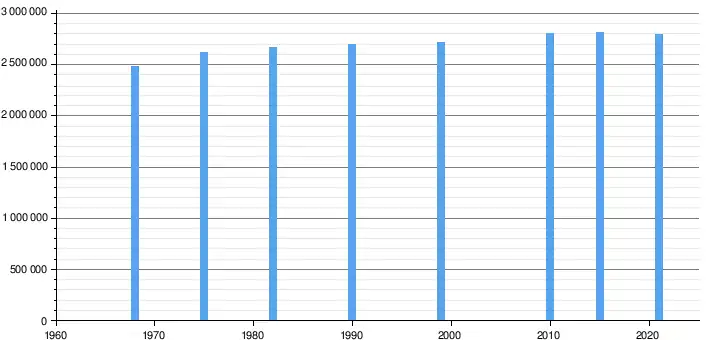 En 2014, 30 214 naissances ont été dénombrées contre 27 698 décès. Le nombre annuel des naissances a diminué depuis cette date, passant à 24 809 en 2022, indépendamment à une augmentation, mais relativement faible, du nombre de décès, avec 32 637 en 2022. Le solde naturel est ainsi négatif et diminue, passant de 2 516 à −7 828[I 2].