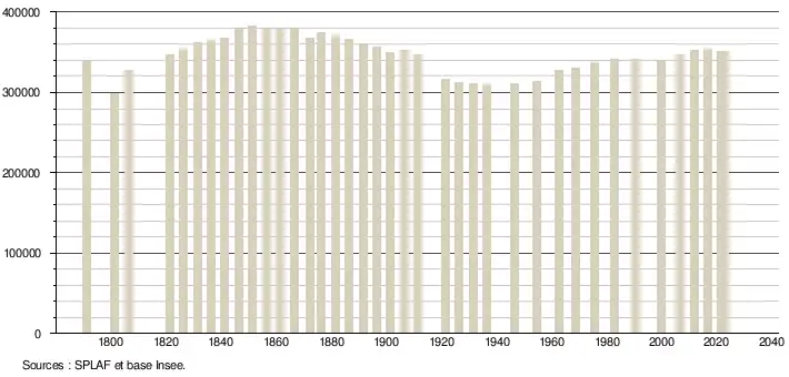 - 1801 : Minimum démographique pour le département pour toute la période contemporaine.