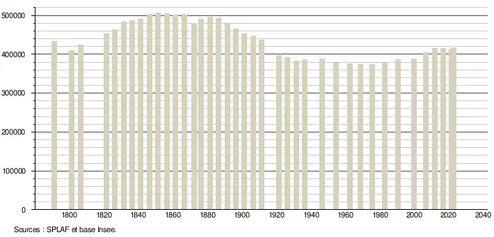 - ↑ POP T1 - Population en historique depuis 1968