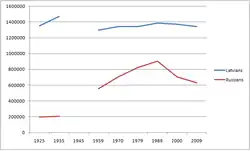 | Non-citoyens de Lettonie | 296 619 | 232 143 | 222 847 | 214 206 | 205 565 | 197 888 | 190 544 | 182 396 |