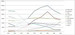 | Biélorusses | 2,1 | 1,4 | 2,9 | 4,0 | 4,5 | 4,5 | 4,1 | 3,3 | 3,2 |