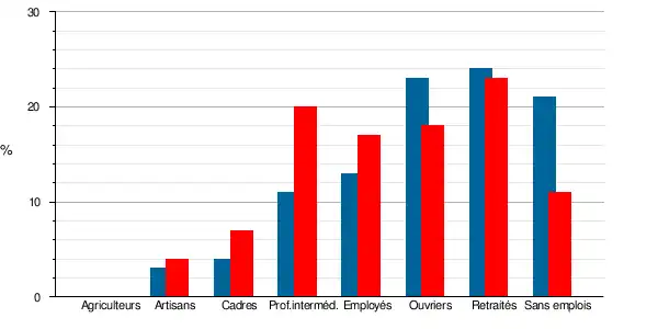 | Ouvriers | 255 | 18,4 | 284 | 23,1 | 15,7 | 17,3 | 13,5 | 14,9 |