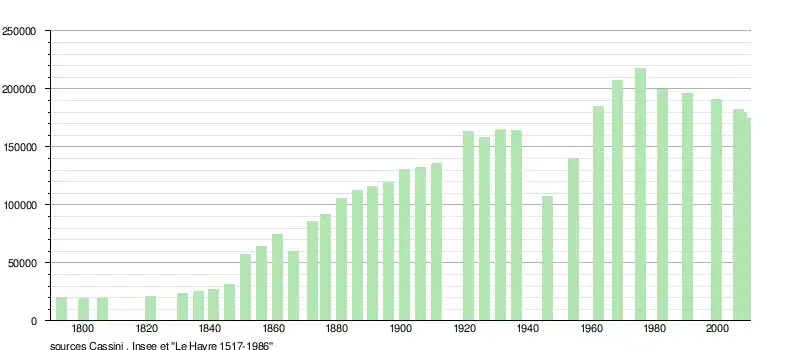L'évolution du nombre d'habitants depuis 1793 est connue à travers les recensements de la population effectués au Havre depuis cette date :