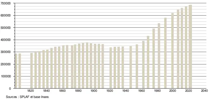 - ↑ Population municipale de référence en vigueur au 1er janvier 2025, millésimée 2022, définie dans les limites territoriales en vigueur au 1er janvier 2024, date de référence statistique : 1er janvier 2022.