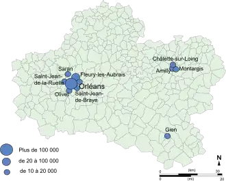 Sur les 325 communes que comprend le département du Loiret, 68 ont en 2021 une population municipale supérieure à 2 000 habitants, 25 ont plus de 5 000 habitants, onze ont plus de 10 000 habitants et une a plus de 25 000 habitants : Orléans.