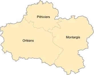 Le département du Loiret comporte trois arrondissements. La population se concentre principalement sur l'arrondissement d'Orléans, qui recense 66 % de la population totale du département en 2022, avec une densité de 155,7 hab./km2, contre 25 % pour l'arrondissement de Montargis et 9 % pour celui de Pithiviers.