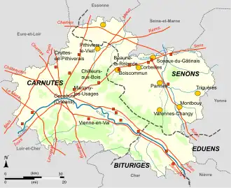 À la fin du IIIe siècle, les structures administratives changent. Le territoire de l'ancienne cité des Carnutes se trouve divisé en deux : Chartres ne garde que le nord, tandis qu'Orléans devient chef-lieu des Aureliani, nouvelle cité correspondant à la partie sud. Parallèlement, aux IIIe et IVe siècles, plusieurs agglomérations du nord du Loiret disparaissent comme Crottes-en-Pithiverais, Sceaux-du-Gâtinais et Beaune-la-Rolande[A 4].