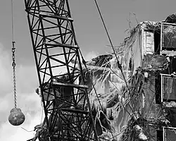 La boule de démolition, comme celle suspendue à cette grue, est l'arme favorite du Boulet.