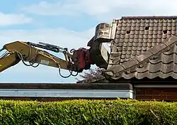 - La boule de démolition, une masse pendue à une grue (interdit dans certaines communes de France) et désormais remplacée par des engins plus précis ;