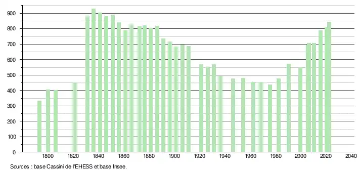 845 hab. (2022 en évolution de +6,42 % par rapport à 2016)
