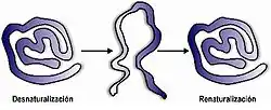 La renaturation est l'opération inverse de ré-association des deux brins de l'ADN qui se recombinent en une seule molécule bicaténaire. La dénaturation de l'ADN peut se faire avec un thermocycleur.