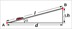 où et sont les altitudes respectives de chacun des 2 points, pris dans la même unité de mesure (exemple : le mètre) et dans le même système de nivellement[b].