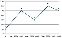 Lorsque le parcours entre les 2 points comporte une succession de dénivelés positifs et négatifs, donc de montées et de descentes, il faut évoquer[4] :