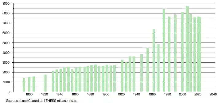 - ↑ Fiches Insee - Populations de référence de la commune pour les années 2006, 2007, 2008, 2009, 2010, 2011, 2012, 2013, 2014, 2015, 2016, 2017, 2018, 2019, 2020, 2021 et 2022.