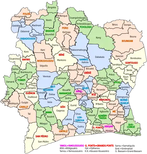Les départements de la Côte d'Ivoire sont une division administrative et une ancienne collectivité territoriale. Le pays est subdivisé en 111 départements, regroupés en 31 régions et 14 districts autonomes[1]. Les départements sont à leur tour subdivisés en 509 sous-préfectures[1].