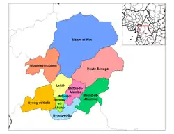 En 1963, la partie anciennement française du Cameroun est découpée en 30 départements : Adamaoua, Bamboutos, Bamoun, Bénoué, Bouma-Ngoko, Diamaré, Dja-et-Lobo, Haut-Nkam, Haut-Nyong, Haute-Sanaga, Kadey, Kribi, Lekié, Logone-et-Chari, Lom-et-Djérem, Margui-Wandala, Mayo-Danay, Mbam, Méfou, Menoua, Mifi, Moungo, Ndé, Nkam, Ntem, Nyong-et-Kéllé, Nyong-et-Mfoumou, Nyong-et-So'o, Sanaga-Maritime et Wouri.