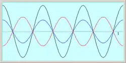 Dans le cas de deux ondes sinusoïdales de même vitesse angulaire ω et nombre d'onde k, mais avec des phases initiales φ différentes, représentées mathématiquement par :