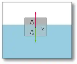 Le déplacement (noté D ou △[1] pour le domaine réglementaire, mais également P[2] dans les cours de stabilité du navire) est une mesure de la masse de liquide déplacée par la partie immergée d'un navire[3] dans différentes situations de chargement. Le déplacement varie avec le tirant d'eau.