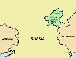 Le , par un oukase du Præsidium du Soviet suprême, la république socialiste soviétique autonome des Allemands de la Volga est liquidée. 367 000 Allemands soviétiques sont déportés vers l'Est (il fallut deux jours pour les rassembler) : dans la république socialiste soviétique autonome des Komis, dans l'Oural, au Kazakhstan, en Sibérie et dans la république de l'Altaï. Il ne s'agissait pas officiellement d'une déportation punition mais d'un transfert destiné à leur ôter toute tentation de collaboration avec l'envahisseur sur le point d'occuper leur territoire. Les conditions n'en étaient pas moins très dures[14]. Les Allemands (de la Baltique, de la Volga, de la Bessarabie, du Caucase, de la mer Noire) en train d'effectuer leur service militaire sont retirés de l'armée pour être déportés. En 1942 commence la mobilisation des Allemands soviétiques âgés d'au moins 17 ans, pour les envoyer dans des colonies de travail. Ils construisirent des usines, travaillent dans les forêts et dans les mines.