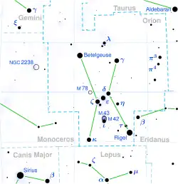 | κ Ori | 2,07 | 3e | −09° 40′ 10.6″ |