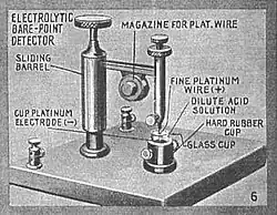 À partir de 1900, le détecteur électrolytique a remplacé le radioconducteur, cohéreur d'Édouard Branly. Le détecteur électrolytique et le détecteur magnétique étaient les premiers dispositifs capables de rendre les signaux radios de TSF audibles avec une paire d'écouteur ou un casque audio.