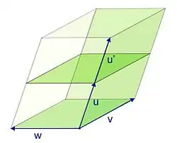 Lorsque l'espace est muni d'un produit scalaire, il est possible de définir le volume de ce parallélotope, parfois appelé son hypervolume pour souligner que la dimension de l'espace concerné n'est pas forcément 3. Il vérifie les propriétés suivantes :