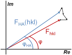 La présence d'un atome lourd (noté HA) dans la structure facilite la détermination de structure, car cet atome peut être localisé facilement dans la maille à partir de la méthode de Patterson. Son facteur de structure partiel FHA peut alors être calculé :