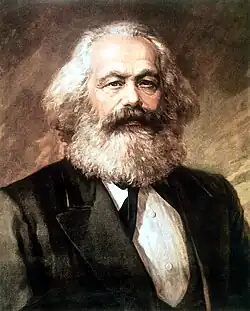 À la fin des années 1840, Karl Marx refuse d'expliquer l'Histoire selon le mouvement de la raison, comme le recommande Hegel, au motif que cette approche est idéaliste[11]. Il analyse l'évolution de l'organisation des sociétés humaines à travers ses modes de production et le moteur de la transformation des sociétés humaines est la lutte des classes. Son approche (qualifiée de « matérialisme historique ») est basée sur ce qu'il appelle « la base réelle de l'Histoire », c'est-à-dire les rapports de l'homme à la nature et à autrui par le travail. Ce sont donc la vie économique, l'industrie et la production qui déterminent l'histoire[11].