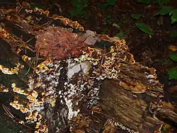 Parmi ceux-ci on peut citer, le Pycnoporus cinnabarinus, le Trametes suaveolens, le Fomitopsis cajanderi, le Fomitopsis rosea, le Ganoderma tsugae, le Gloeophyllum sepiarium, le Trichaptum abietinum, le Trichaptum fuscoviolaceum...