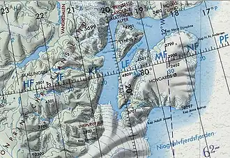 - ↑ Catalogue of place names in northern East Greenland, Geological Survey of Denmark and Greenland.
