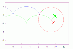 Pour la cycloïde avec la représentation paramétrique la développée sera : qui décrit une réplique transposée d'elle-même.