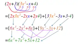 Cette deuxième règle permet par exemple de trouver la forme développée du polynôme (2x +1)(3x +5) :