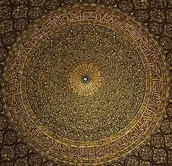 Une inscription sur le dôme, « Muḥammad », remonte à une cinquantaine d'années après la mort de Mahomet, soit en 692 (72 de l'Hégire)[50],[51], probablement issue de la phrase biblique : « Béni soit celui qui vient au nom du Seigneur » - « le béni » (Mhmd) désignant Jésus (Īsā)[52],[53].