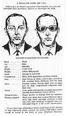| Morts | 1 (D.B Cooper, présumé mort par le FBI) | |||