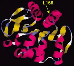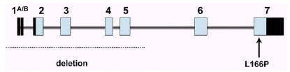 Dans la famille italienne, la mutation était plutôt due à l’introduction d’une proline en position 166 au lieu d’une leucine. L’invasion de cette proline dans l’hélice alpha empêchait donc la trimérisation de la protéine et modifiait la structure du site actif. À la suite de cette mutation, DJ-1 serait retrouvée à l’intérieur des mitochondries.