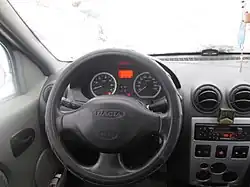 - Elle a le train avant d'une Clio II et le train arrière d'un Modus. Les poignées de portes, le volant, la direction, le compte-tours et les freins arrière viennent de la Clio II, mais les aérateurs sont ceux de la Dacia Solenza. Les commodos, les réservoirs du liquide de freins et du vase d'expansion viennent de la Mégane II. Le cendrier et certains aérateurs de l'Espace IV. Le pommeau de levier de vitesses est celui de l'Espace III[7]. Le système ABS est emprunté à la Mégane II, la boîte de vitesses des Mégane II et Laguna II et le moteur provient du Kangoo.