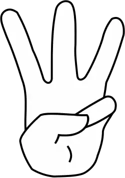 - 4 : l'index, le majeur, l'annulaire et l'auriculaire levés,