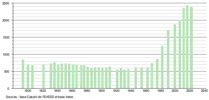 - ↑ Fiches Insee - Populations de référence de la commune pour les années 2006, 2007, 2008, 2009, 2010, 2011, 2012, 2013, 2014, 2015, 2016, 2017, 2018, 2019, 2020, 2021 et 2022.