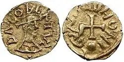 Tiers de sou d'or à l'effigie de Dagobert II. BnF, monnaies, médailles et antiques. | |